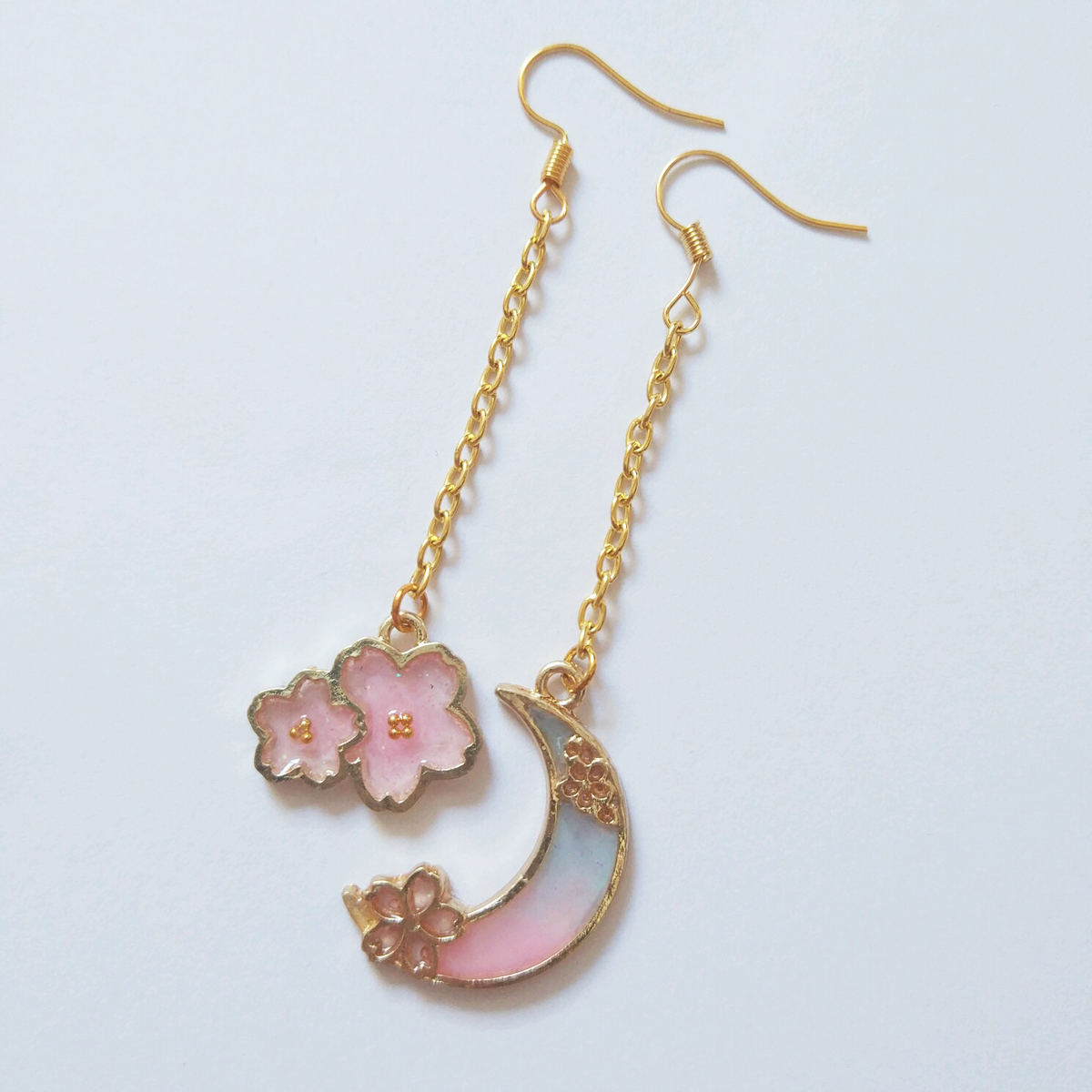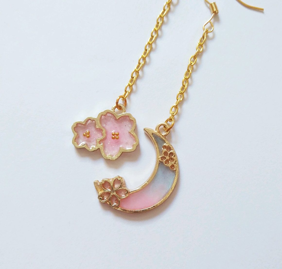 Sakura flower and moon earrings. Simple and magical.
